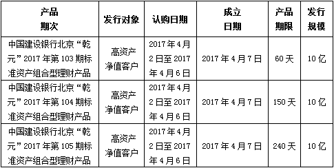 中国建设银行北京市分行定于2017年4月2日发行理财产品,现将相关发行情况公告如下: