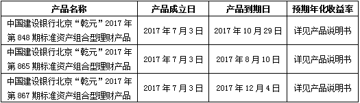 建行北京市分行理财产品成立公告2017年7月3日