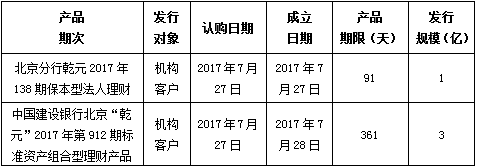中国建设银行北京市分行定于2017年7月27日发行理财产品,现将相关发行情况公告如下: