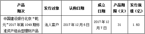 中国建设银行北京市分行定于2017年12月6日发行理财产品,现将相关发行情况公告如下: