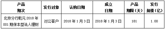 中国建设银行北京市分行定于2018年1月3日发行理财产品,现将相关发行情况公告如下: