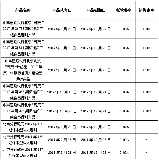 根据与投资者的约定,中国建设银行发行的下列理财产品已经到期并完成资金兑付,现将有关情况公告如下: