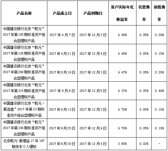 中国建设银行个人类理财产品终止及清算公告2017年12月8日