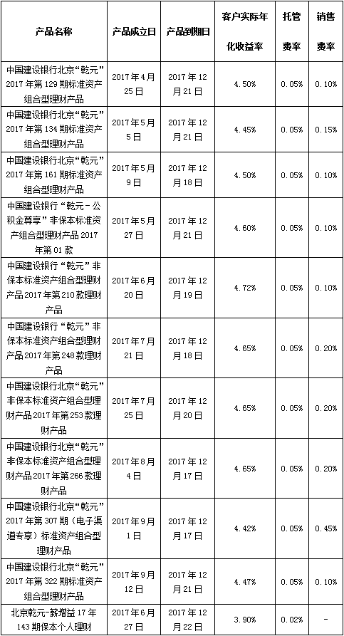 根据与投资者的约定,中国建设银行发行的下列理财产品已经到期并完成资金兑付,现将有关情况公告如下: