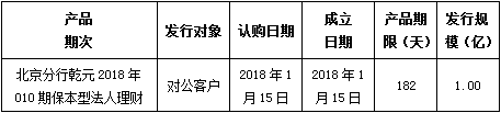 中国建设银行北京市分行定于2018年1月15日发行理财产品,现将相关发行情况公告如下: