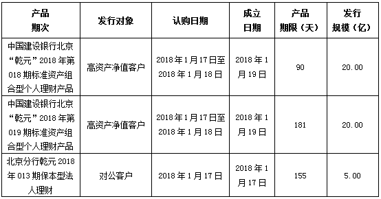 中国建设银行北京市分行定于2018年1月17日发行理财产品,现将相关发行情况公告如下: