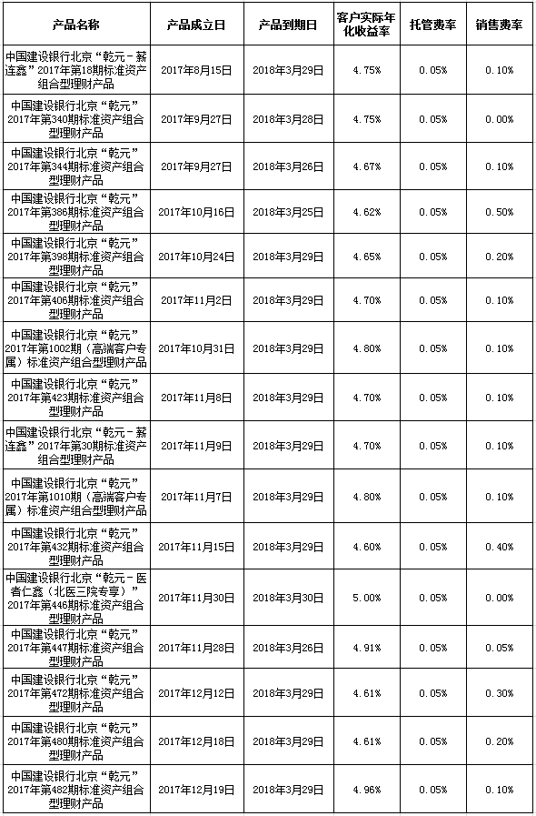 中国建设银行个人类理财产品终止及清算公告2018年3月30日