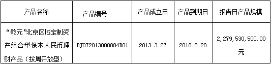 我行依照《中国银监会关于规范商业银行理财业务投资运作有关问题的通知》(银监发【2013】8号)要求,现对"乾元"北京区域定制资产组合型保本人民币理财产品(按周开放型)投资非标准化债权资产清单披露如下: