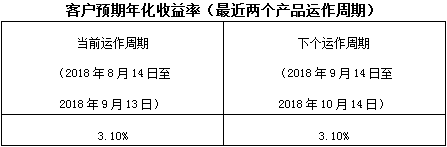 下个运作周期客户预期年化收益率于2018年9月14日(含)开始执行。