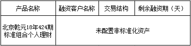 依照《中国银监会关于规范商业银行理财业务投资运作有关问题的通知》(银监发〔2013〕8号)要求,现对本期产品投资非标准化债权资产清单披露如下: