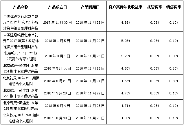 中国建设银行个人类理财产品终止及清算公告2018年11月30日