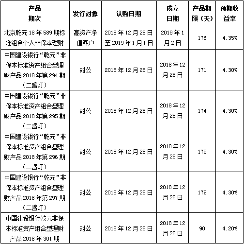 中国建设银行北京市分行定于2018年12月28日发行理财产品,现将相关发行情况公告如下: