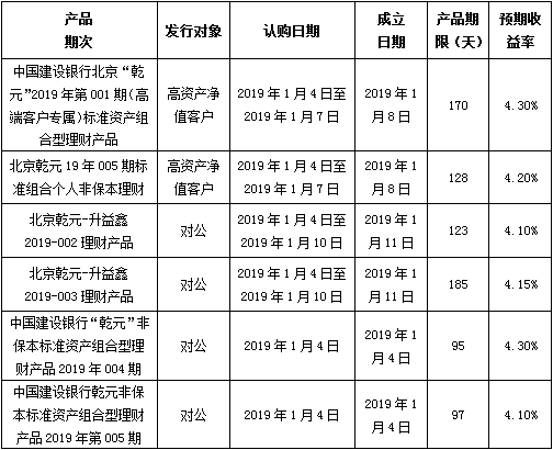 中国建设银行北京市分行定于2019年1月4日发行理财产品,现将相关发行情况公告如下: