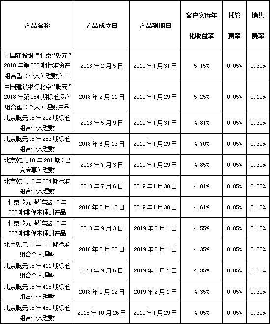 中国建设银行个人类理财产品终止及清算公告2019年2月1日