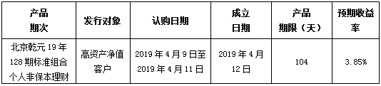 中国建设银行北京市分行定于2019年4月9日发行理财产品,现将相关发行情况公告如下:
