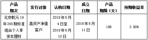 中国建设银行北京市分行定于2019年6月4日发行理财产品,现将相关发行情况公告如下: