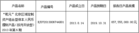 “乾元”北京区域定制资产组合型保本人民币理财产品(按月开放型)2013年第6期月度投资管理报告