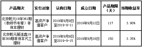 建行北京市分行理财产品发行公告2019年9月9日