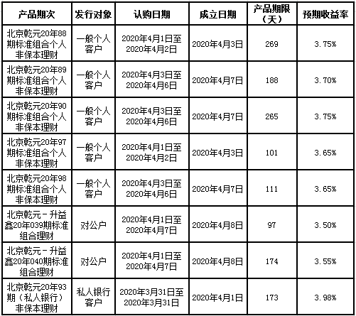 建行北京市分行理财产品发行公告2020年4月2日