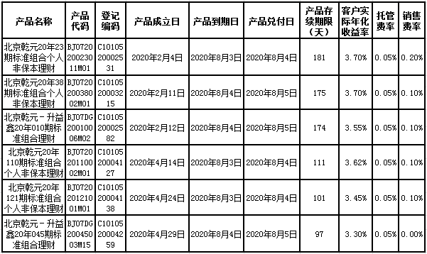 中国建设银行理财产品终止及清算公告2020年8月10日