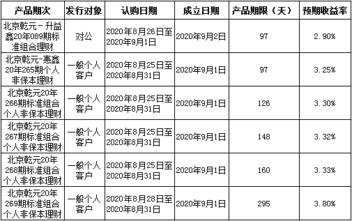 中国建设银行北京市分行定于2020年8月24日至2020年8月28日发行理财产品,现将相关发行情况公告如下: