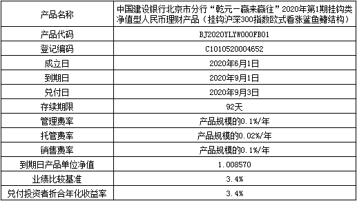 根据与投资者的约定,中国建设银行发行的下列理财产品已经到期并完成资金兑付,现将有关情况公告如下: