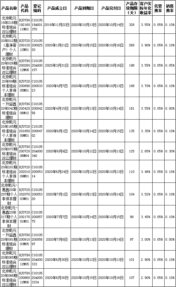 中国建设银行理财产品终止及清算公告2020年10月19日