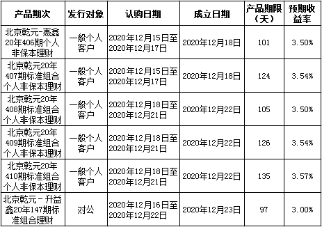 中国建设银行北京市分行定于2020年12月14日至2020年12月18日发行理财产品,现将相关发行情况公告如下: