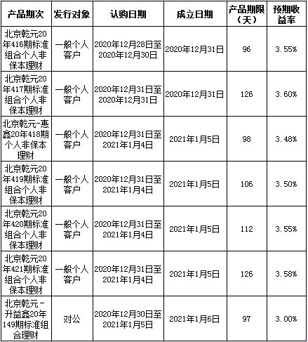 中国建设银行北京市分行定于2020年12月28日至2021年1月1日发行理财产品,现将相关发行情况公告如下: