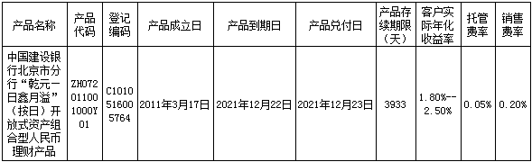中国建设银行理财产品终止及清算公告2021年12月24日
