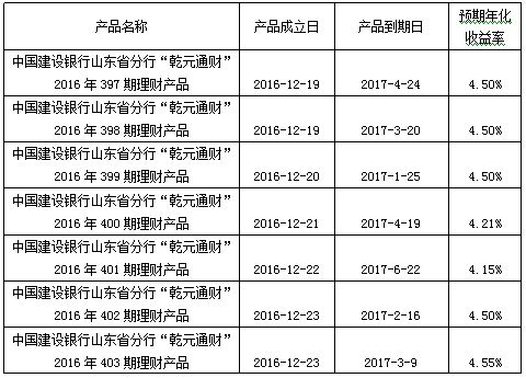 中国建设银行山东省分行“乾元通财”产品成立公告