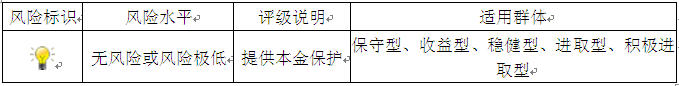 本期产品为保本浮动收益型理财产品,本理财产品有投资风险,只保障理财资金本金,不保证理财收益,您应当充分认识投资风险,谨慎投资。本期产品期限为63天(中国建设银行有权对产品进行展期或提前终止)。本期产品内部风险评级级别为一盏警示灯,风险程度属于无风险或风险极低,适用于保守型、收益型、稳健型、进取型及积极进取型投资者。最不利情况下,客户只能收回投资本金,不能获得任何投资收益。